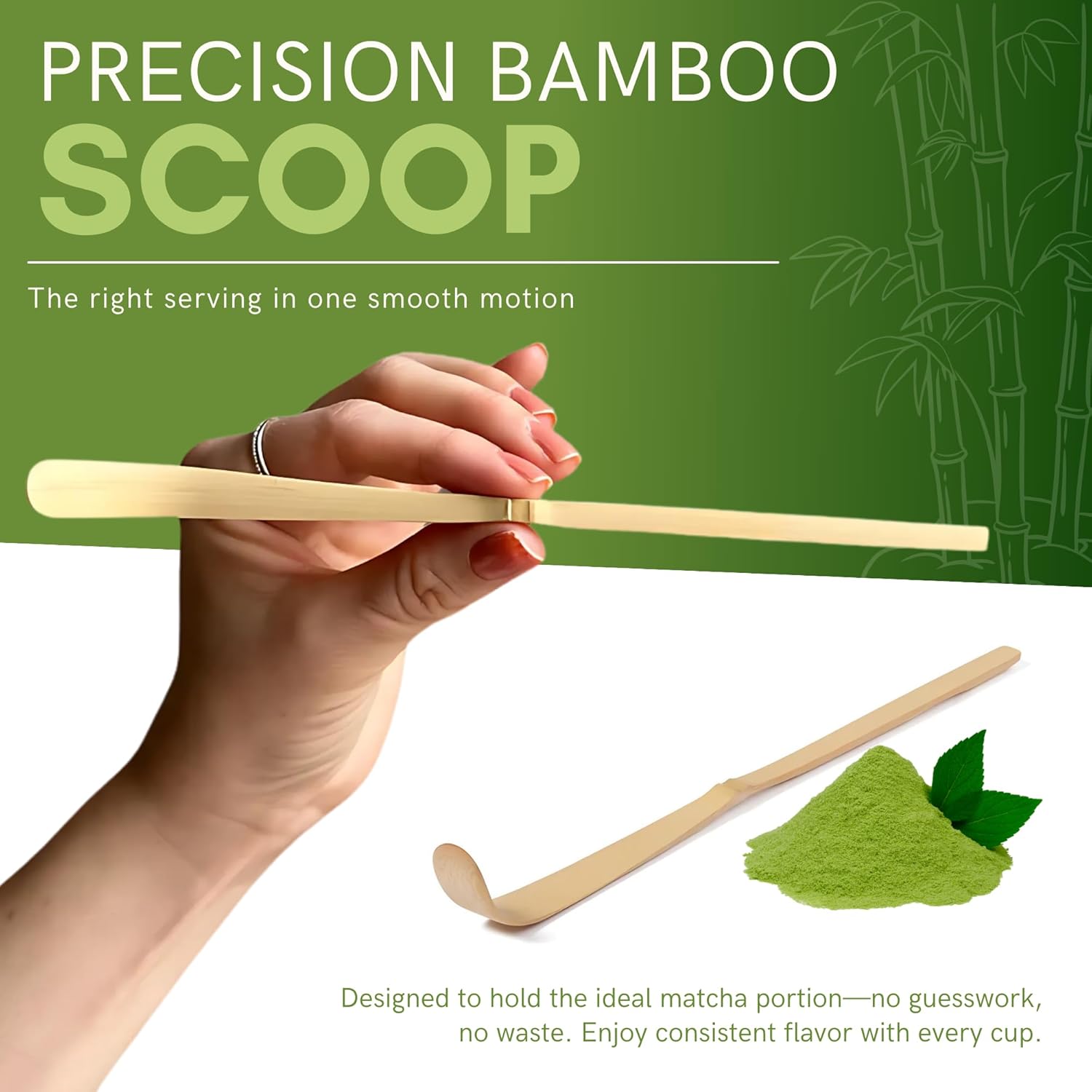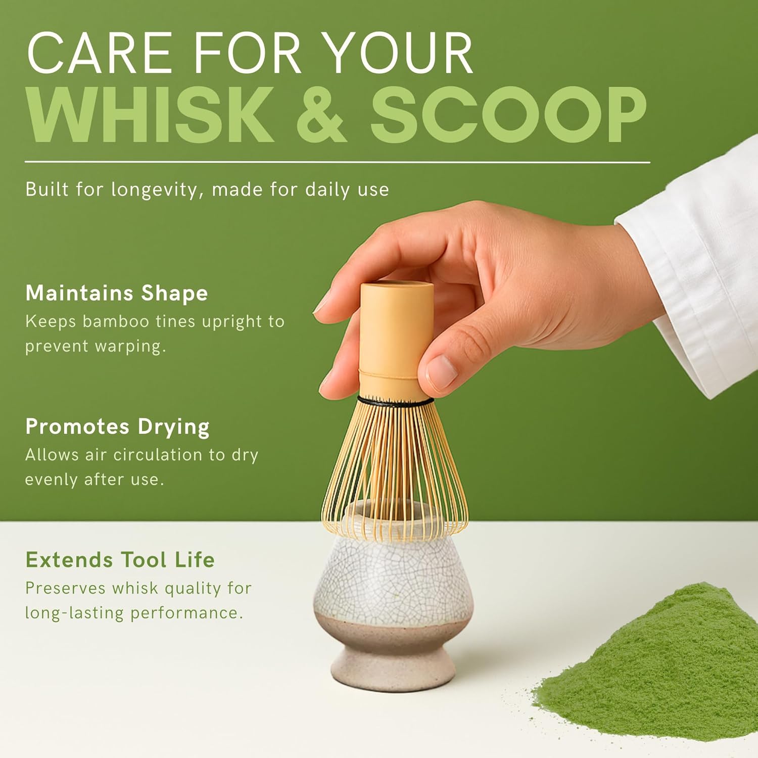 Complete 7-Piece Kit: Includes bamboo whisk, whisk holder, scoop, bowl, spoon, sifter & towel.