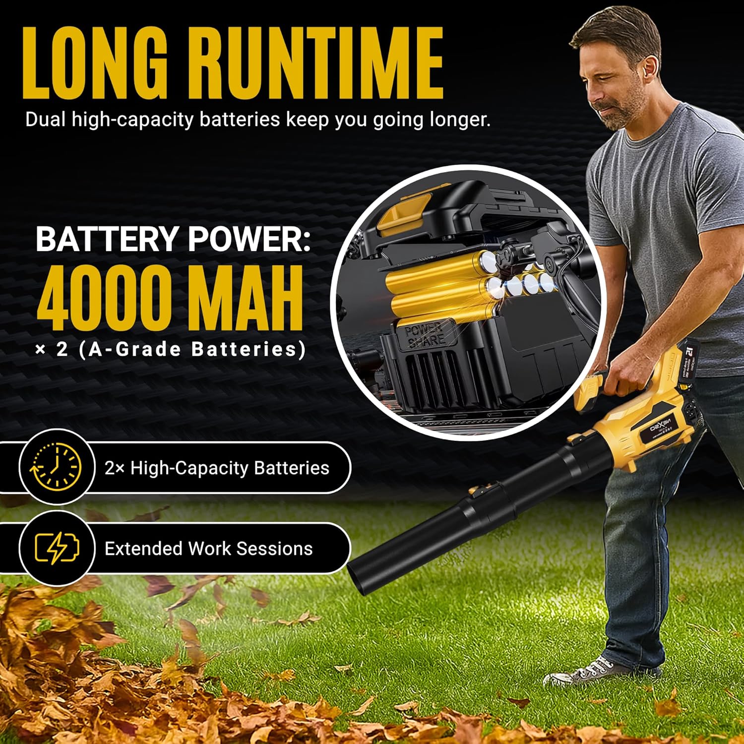 Dual 4000mAh Batteries: Long runtime with fast-charging design for uninterrupted use.