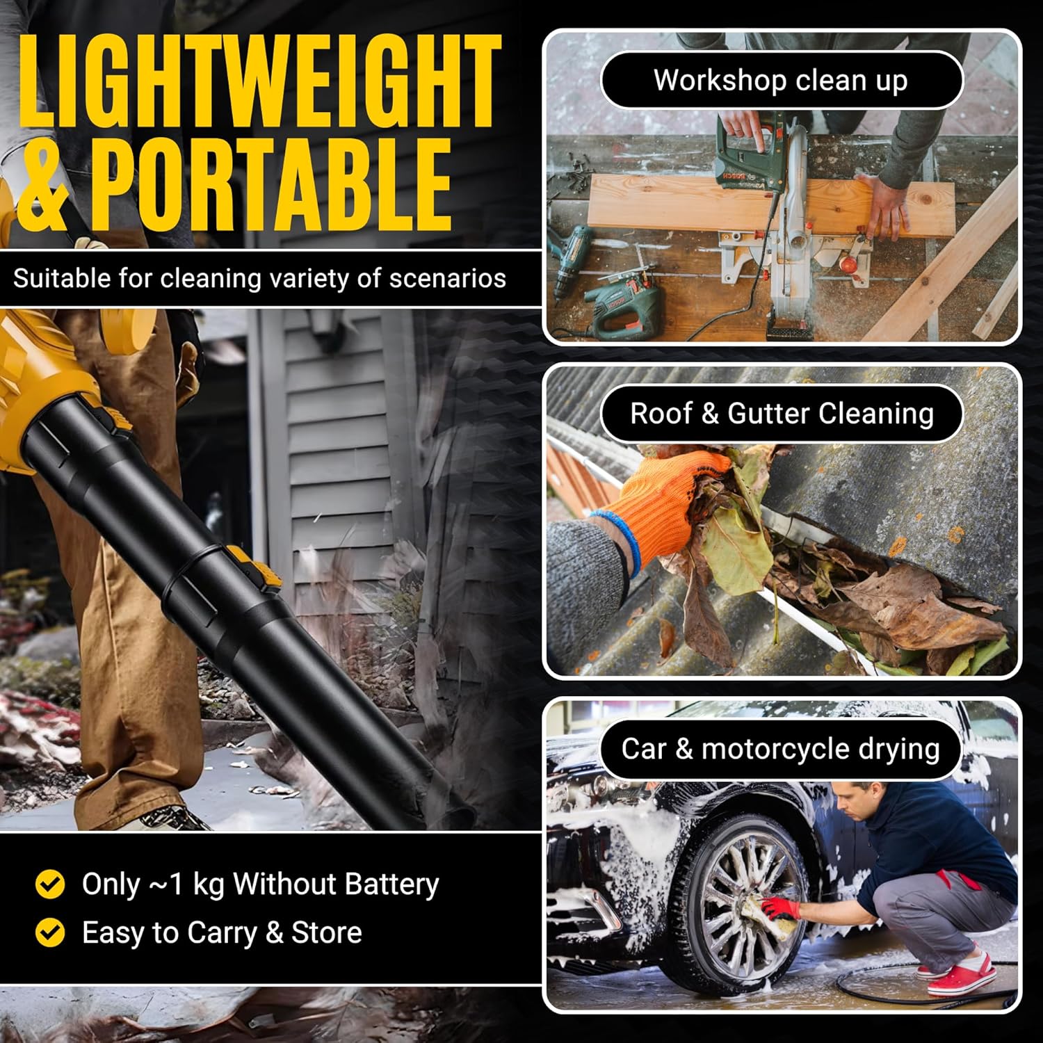 Multi-Purpose Use: Ideal for drying cars, clearing leaves, cleaning workshops & patios.