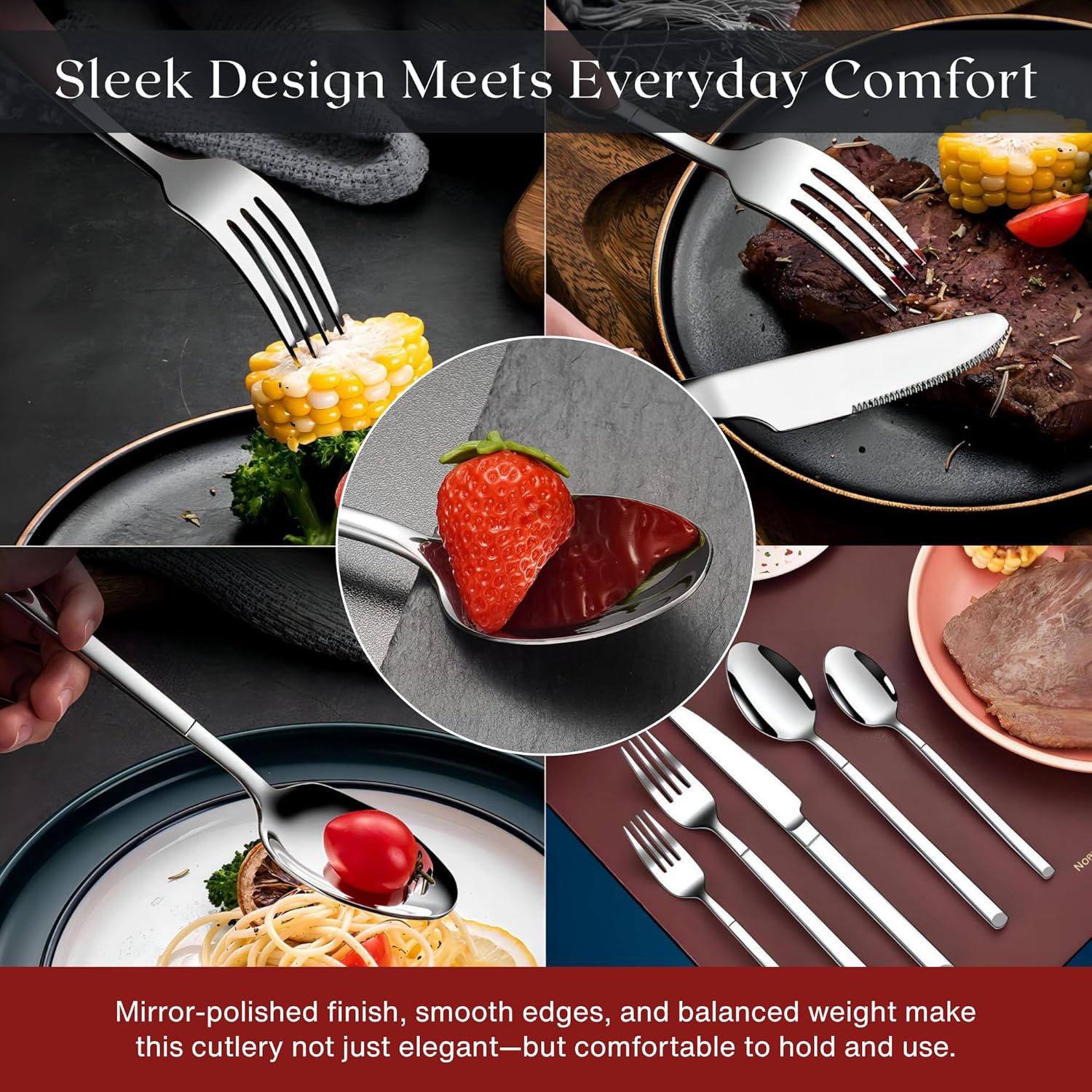Elevate your dining table with the Nexso 30-Piece Silver Stainless Steel Cutlery Set, combining timeless elegance and everyday practicality. Crafted with a premium mirror finish and ergonomic design, this flatware set for six is perfect for both daily meals and special occasions across the UAE.