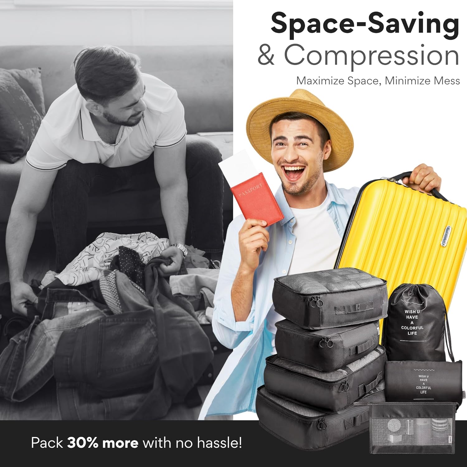 NEXSO Black Travel Organizer 8-Piece Set – Packing Cubes