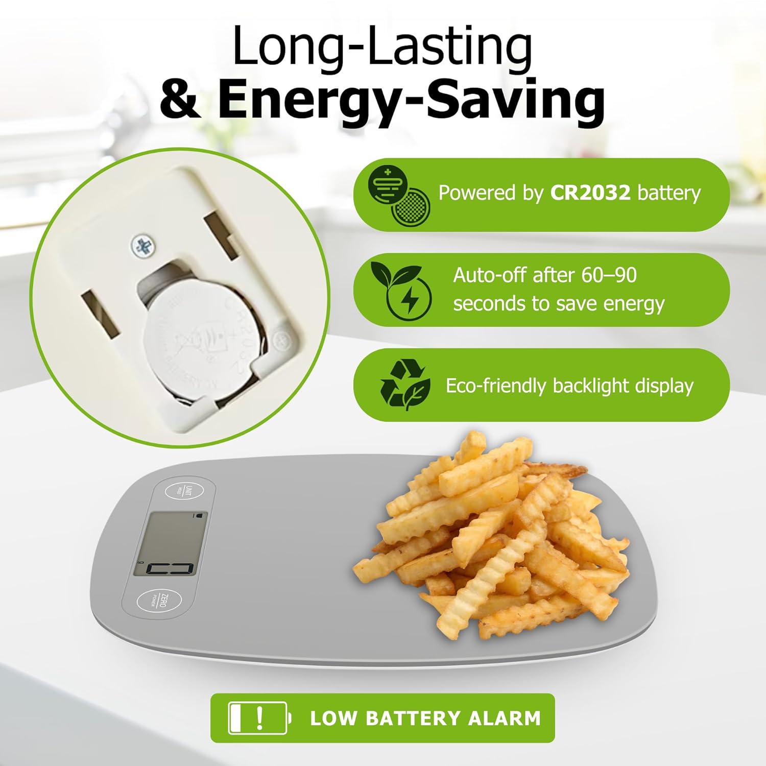 Tare Function: Subtract container weight for precise ingredient measurement.