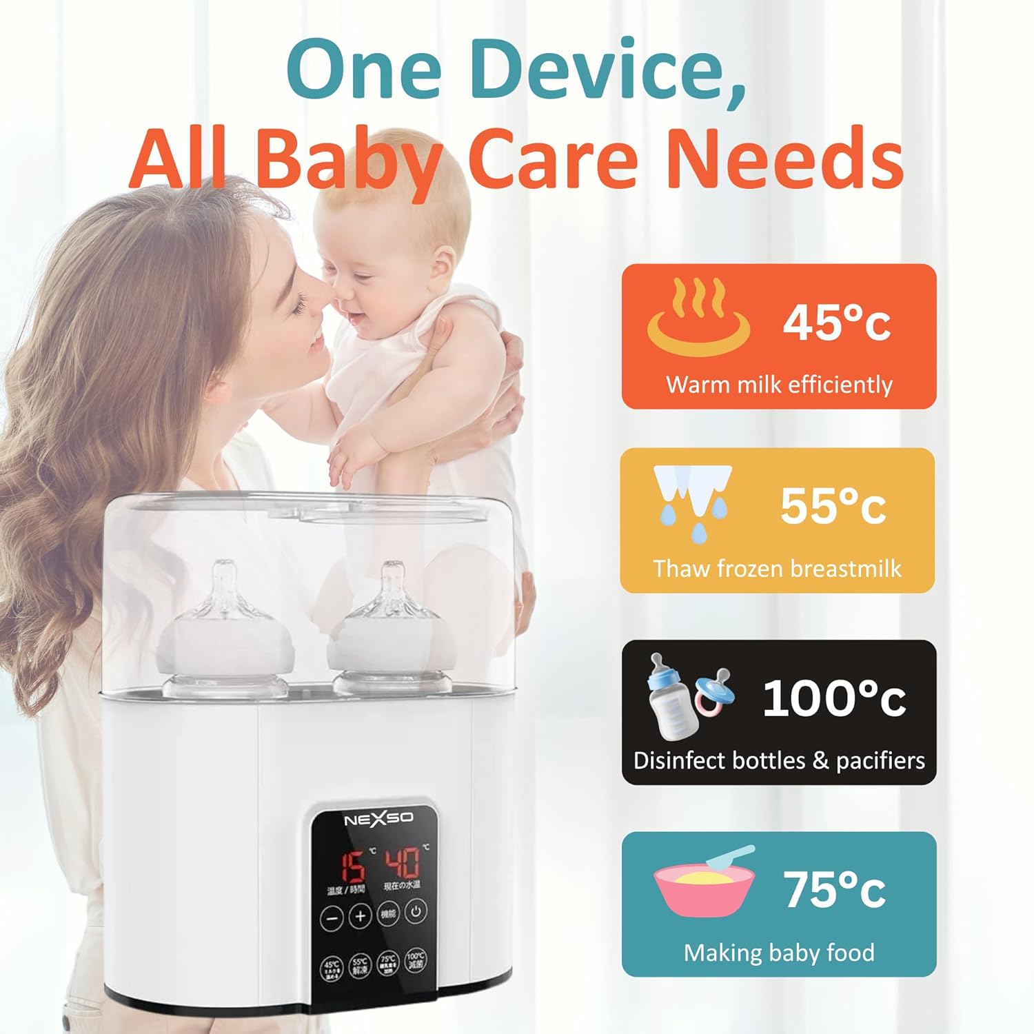 Fast Warming & Sterilizing: Quickly heats milk or baby food while sterilizing bottles or pacifiers.