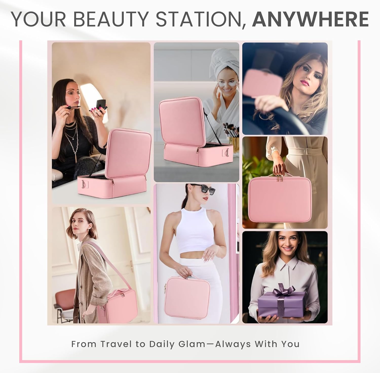 Featuring adjustable dividers and multiple compartments, organize your makeup tools, brushes, skincare products, and more, ensuring neat and easy access while traveling.