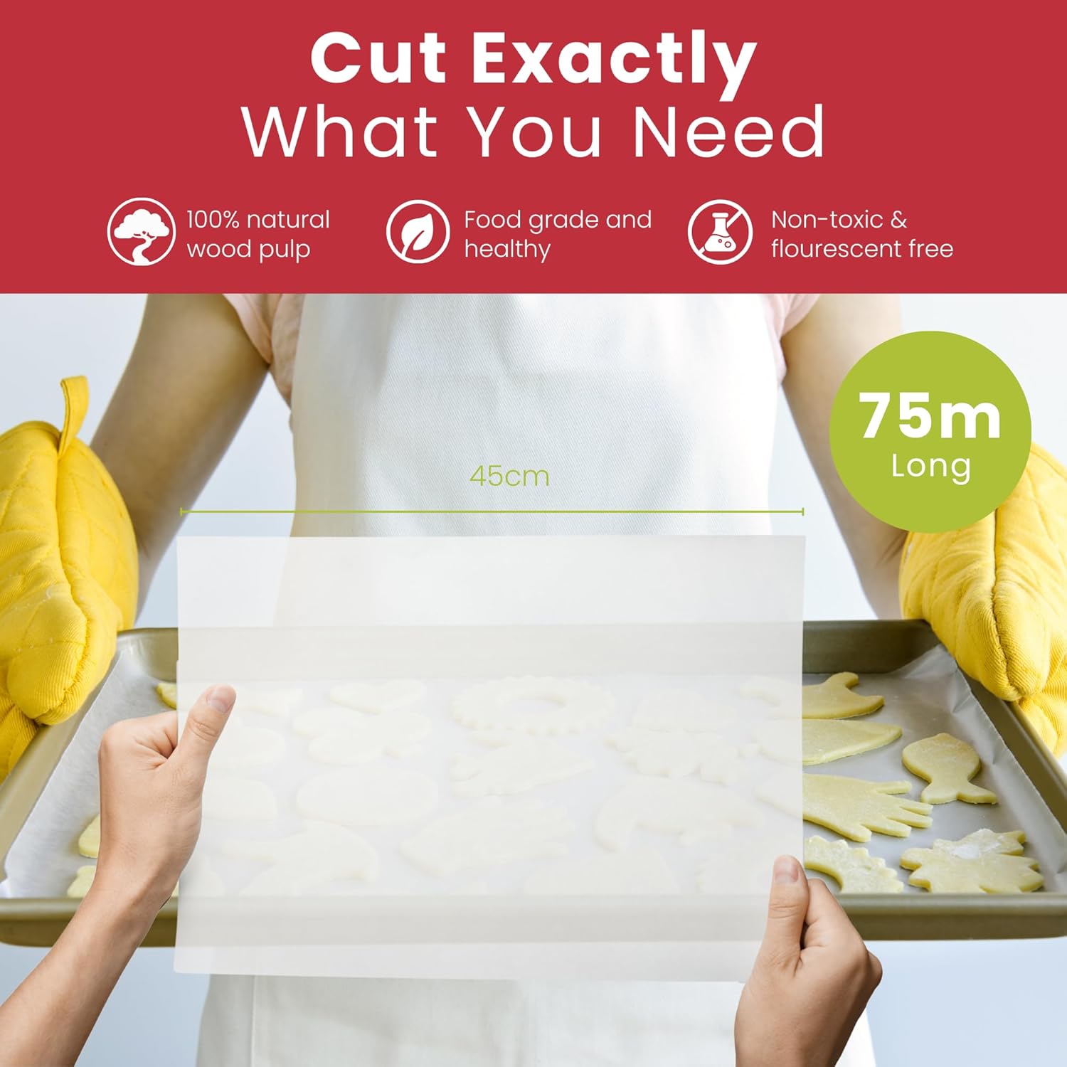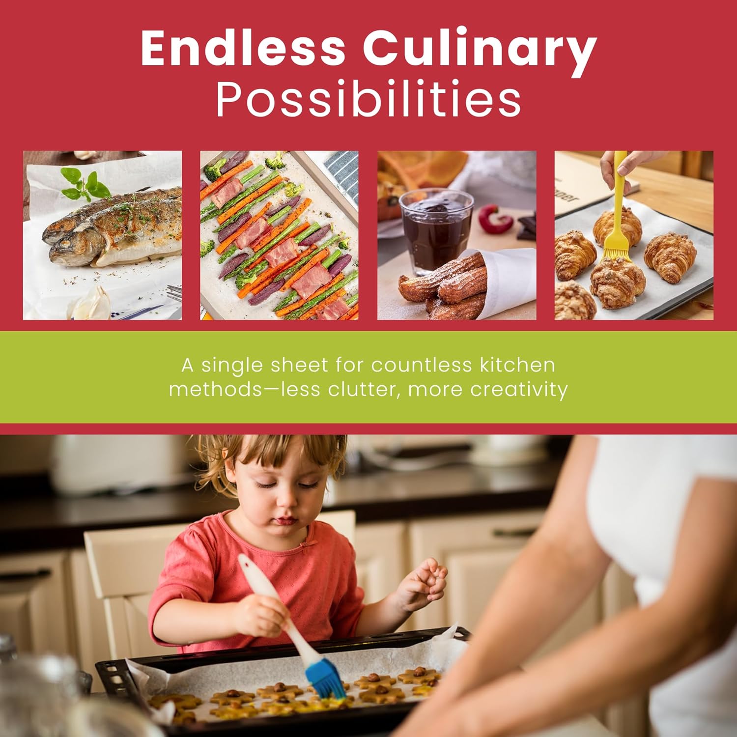 Ample length and width provide maximum coverage for large baking trays, air fryer baskets, and grills, reducing waste while ensuring precise and consistent baking and cooking results.